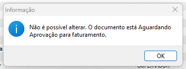• Caso um aprovador edite um pedido que estava “Aguardando aprovação” e o altere para um status anterior (ex: “Em Aberto”), o sistema emitirá um aviso.