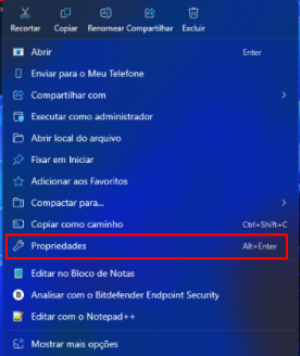 ◾ Será aberta a pasta do sistema, então clique com o botão contrário do mouse sobre o executável ➡️Propriedades