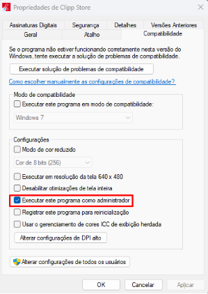 Para evitar bloqueios preventivos do sistema operacional e garantir a estabilidade do Clipp Store em seu ambiente de trabalho, recomendamos realizar o ajuste de privilégios nos arquivos executáveis.