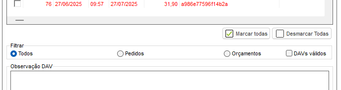 Adicionada as opções de filtrar todos, orçamentos ou pedidos na importação de DAV’s na NF-e.